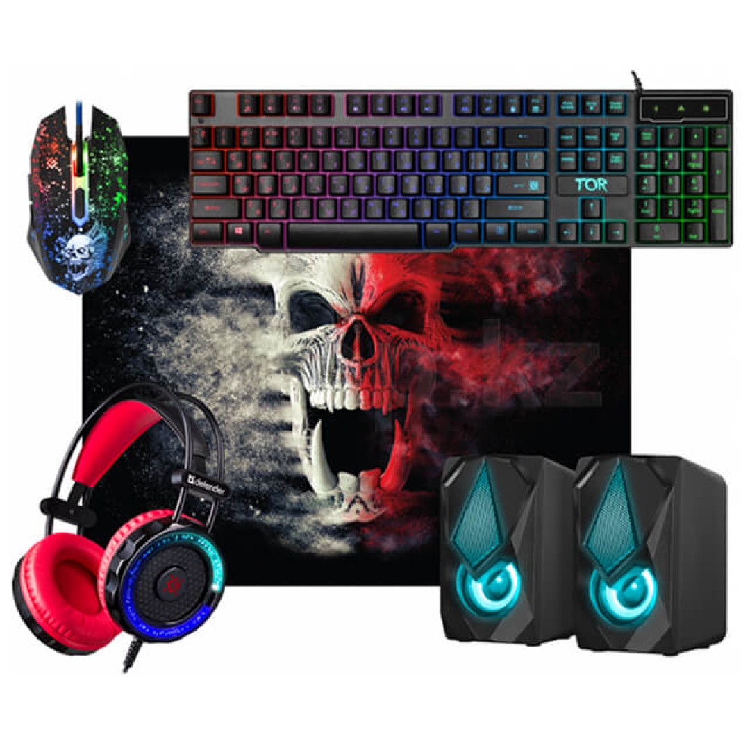 Описание Игровой набор Defender Tor MHP-127 (клавиатура+наушники+мышь+колонка+коврик)