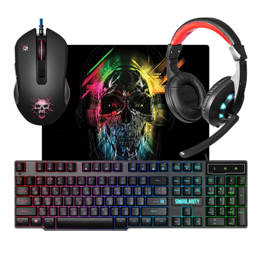 Описание Клавиатура+мышь+коврик для мыши+ наушники, USB, Defender Singularity MKP-118 KeyBoard + mouse+pad+headphone, (52118)