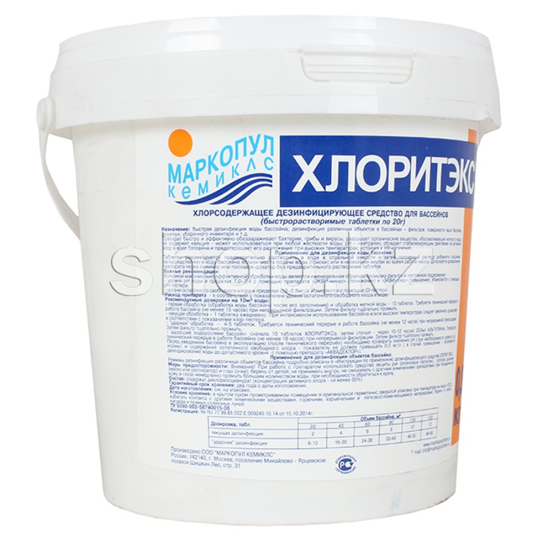 Описание Хлорсодержащее дезинфицирующее средство Маркопул кемиклс Хлоритэкс, 0.8 кг