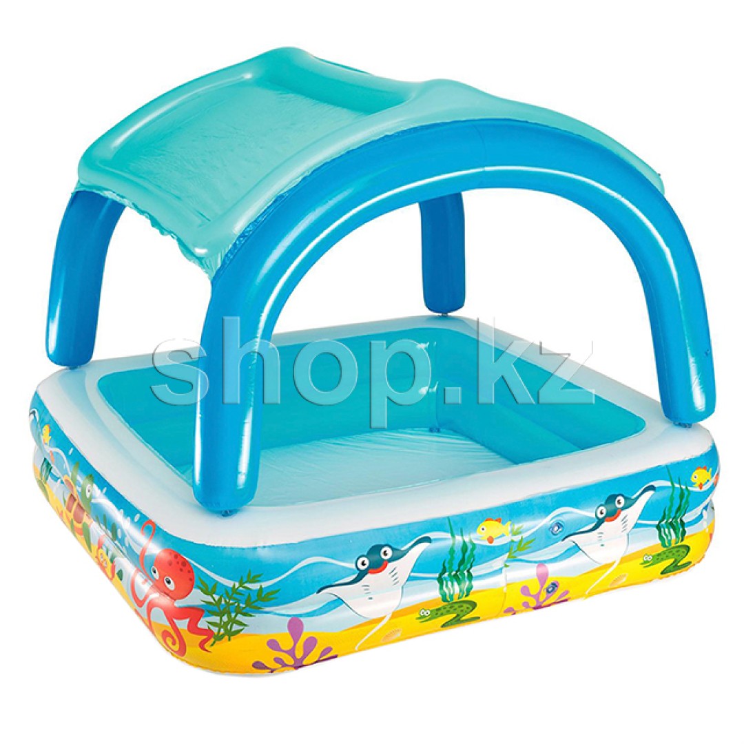 Игровой бассейн с тентом доставляет бесконечную радость детям, которые любят океанскую жизнь и брызгаться в воде. Встроенный тент накрывает площадь бассейна, создавая уютную тень. Хорошо и то, что тент съемный, так что можно наслаждаться солнечными лучами, когда температура позволяет.