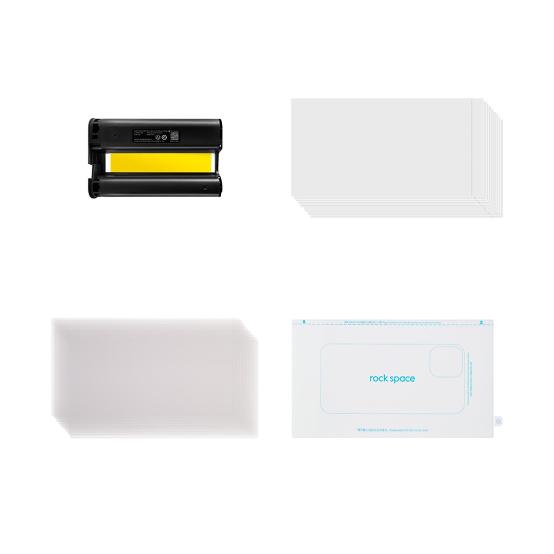 Основные характеристики Набор расходных материалов для принтера наклеек, Rock Space, 71225 (6941402771225), В состав входит: ленточный картридж – 1 шт., лист бумаги – 36 шт., пленка для ламинации – 36 шт., коврик для резки – 1 шт